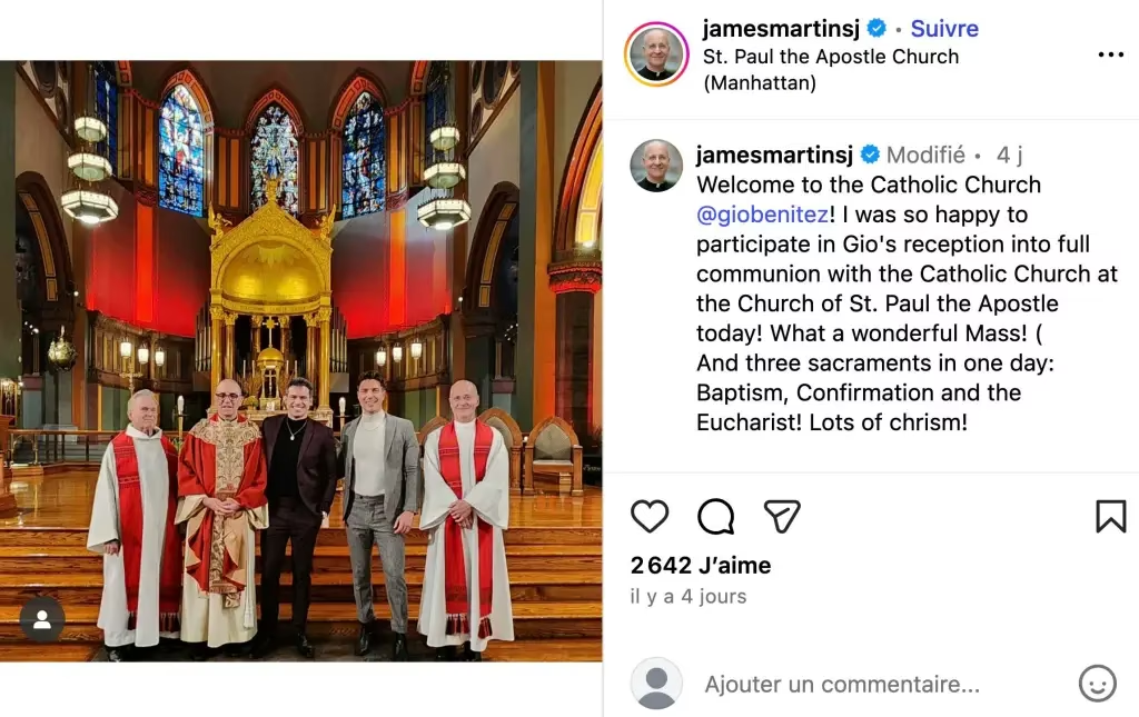 Bienvenue dans l’Église catholique Gio Benitez ! J’étais tellement heureux de participer aujourd’hui à l’accueil de Gio dans la pleine communion avec l’Église catholique à l’église Saint-Paul-l’Apôtre ! Quelle messe merveilleuse ! Et trois sacrements en une journée : le baptême, la confirmation et l’Eucharistie ! Beaucoup de chrême !